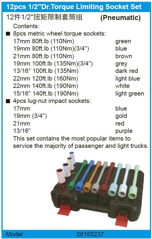 12pcs 1/2"Dr.Torque Limiting Socket Set