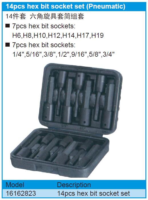 英文名称:  14Pcs 1/2"Dr.Hex Bit Socket Set(Pneumatic)