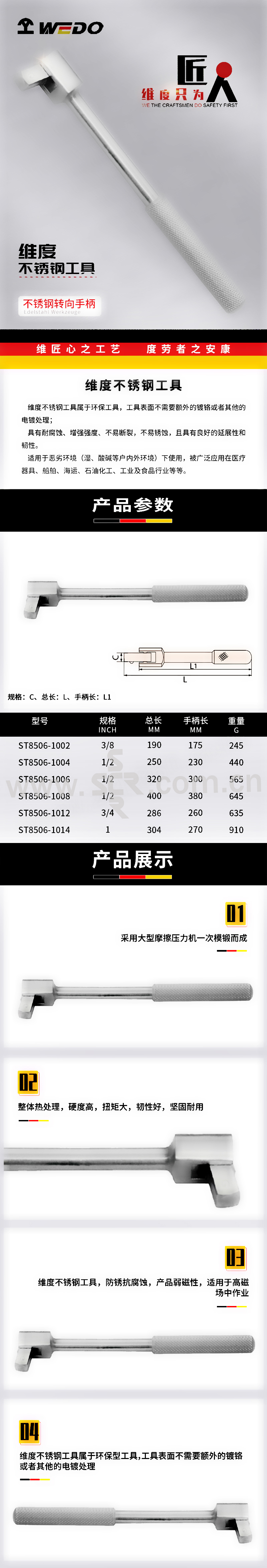 WEDO/维度 420不锈钢转向手柄 SS0420-8506-1002 3/8"×190mm 1把