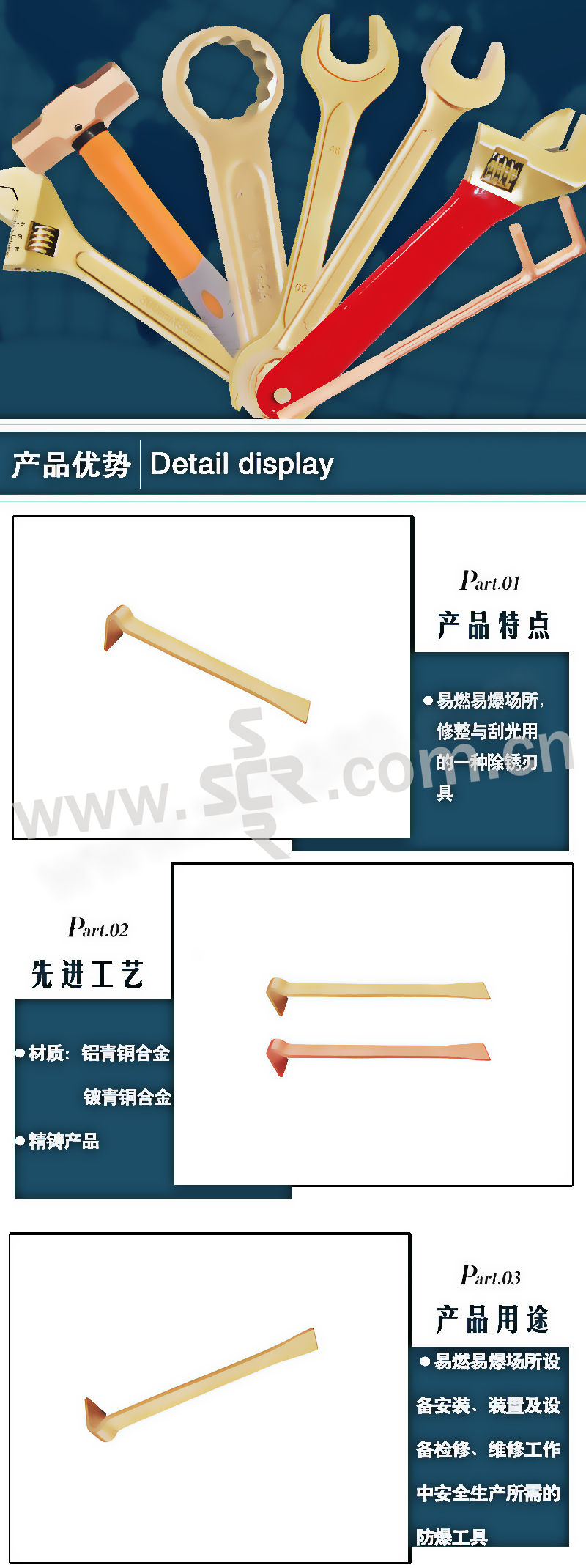 ·在易燃易爆场所用于修整与刮光用的一种除锈刃具。