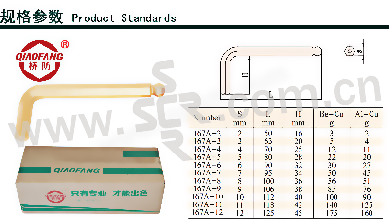 QIAOFANG/中泊桥防 铝青铜防爆英制内六角扳手 167A-2 2mm 1把