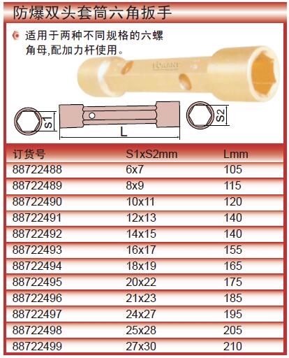 ·经久耐用,产品物美价廉, ·适用于两种不同规格的六螺角母,配加力杆使用。