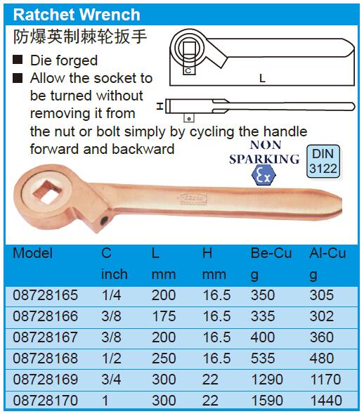 防爆英制棘轮扳手 08728165 200mm 1把