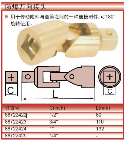 ·经久耐用,产品物美价廉 ·用于传动附件与套筒之间的一种连接附件,可180°旋转使用