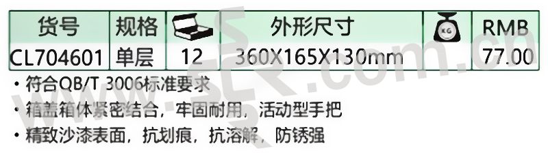 CHANGLU/长鹿 高档铁皮工具箱 704601 单层 1个
