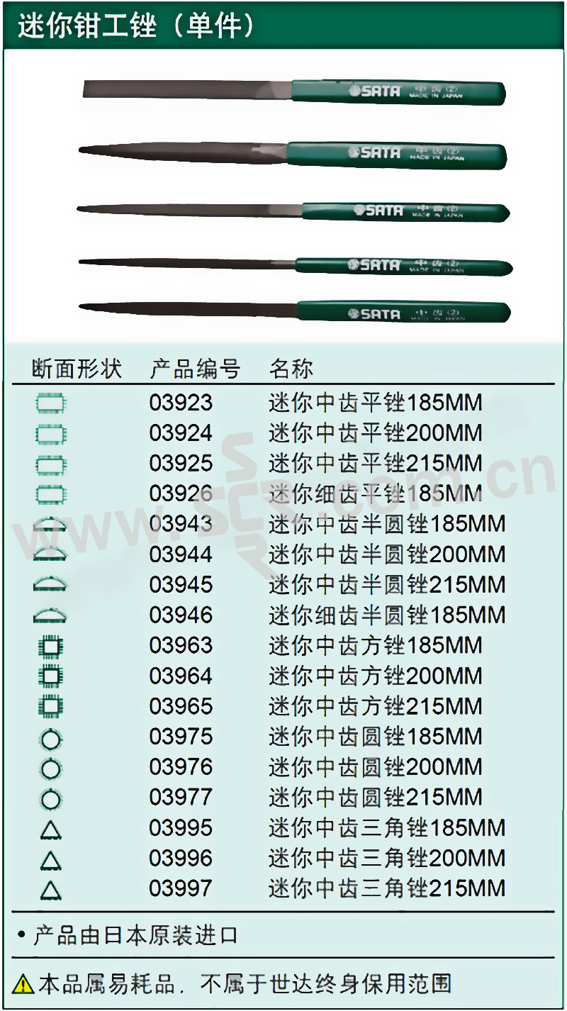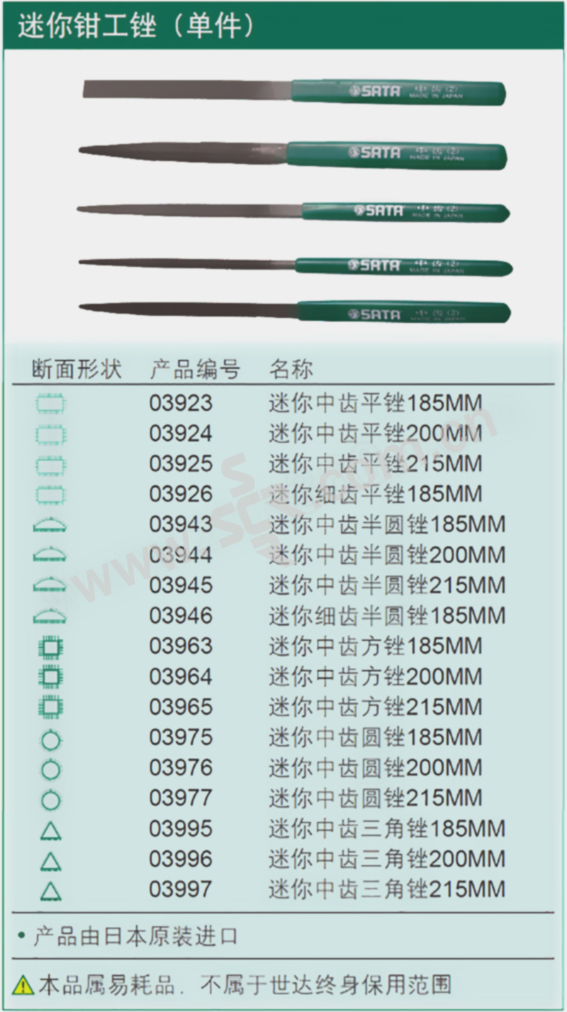SATA/世达 迷你平锉 SATA-03923 185mm 中齿 1把