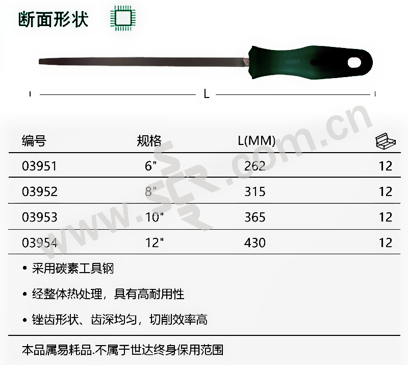 ·采用特殊碳素工具钢,锉身硬度达到63~66HRC。