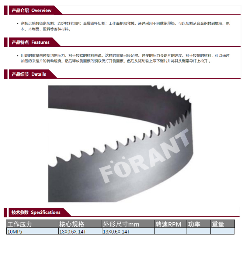 矿用乳化液带锯条