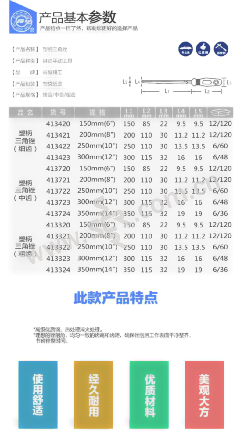 ·理想的锉削角,均匀一致的齿高和齿距,确保锉削后工作表面干净整齐。节省修整时间。