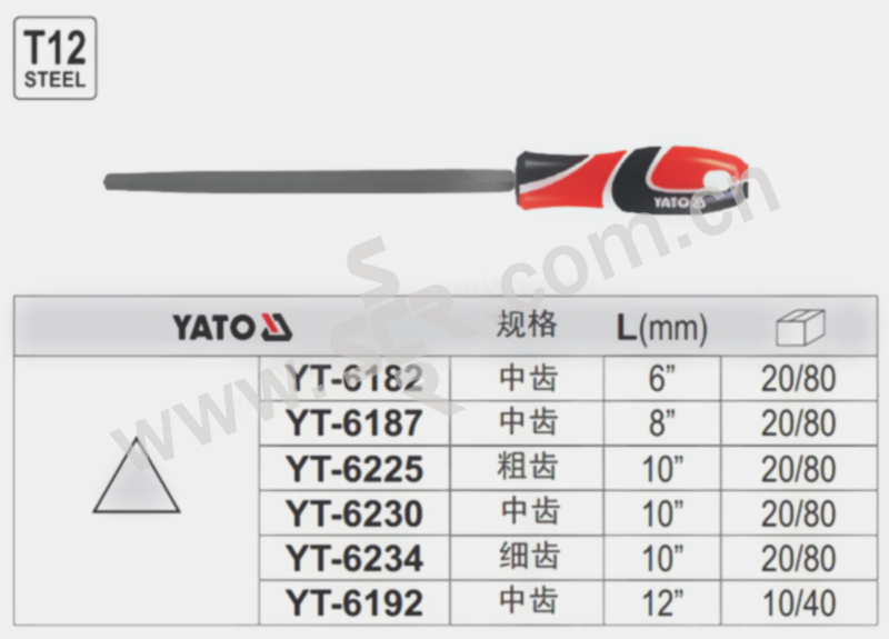 YATO/易尔拓 三色柄三角锉粗齿 YT-6225 250mm 1#(粗齿) 1把