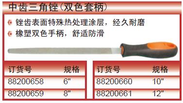 ·锉齿表面特殊热处理涂层,经久耐磨 ·橡塑双色手柄,舒适防滑