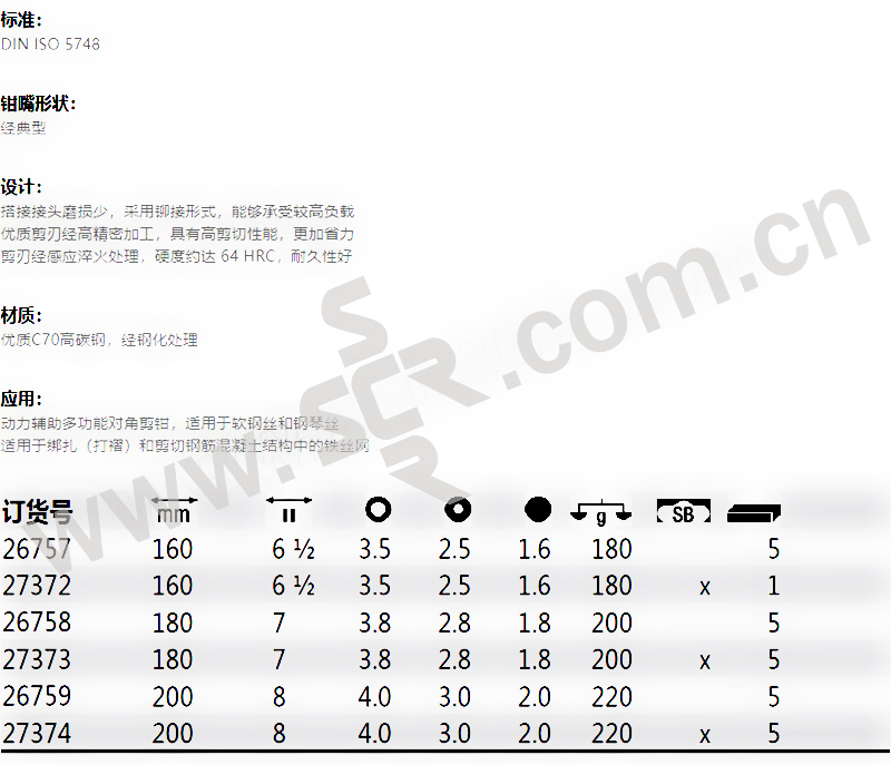 WIHA/威汉 Z17001系列通用顶口剪钳 WIHA-26757 160mm 齿口 沾塑柄 1把
