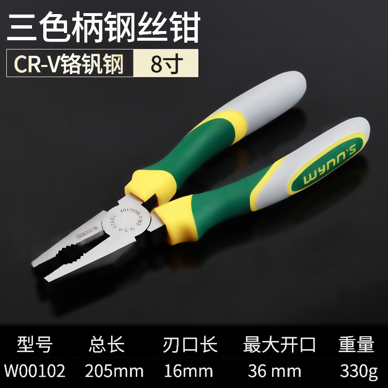 WYNNS/威力狮 三色柄钢丝钳 W00102 长200mm 1把