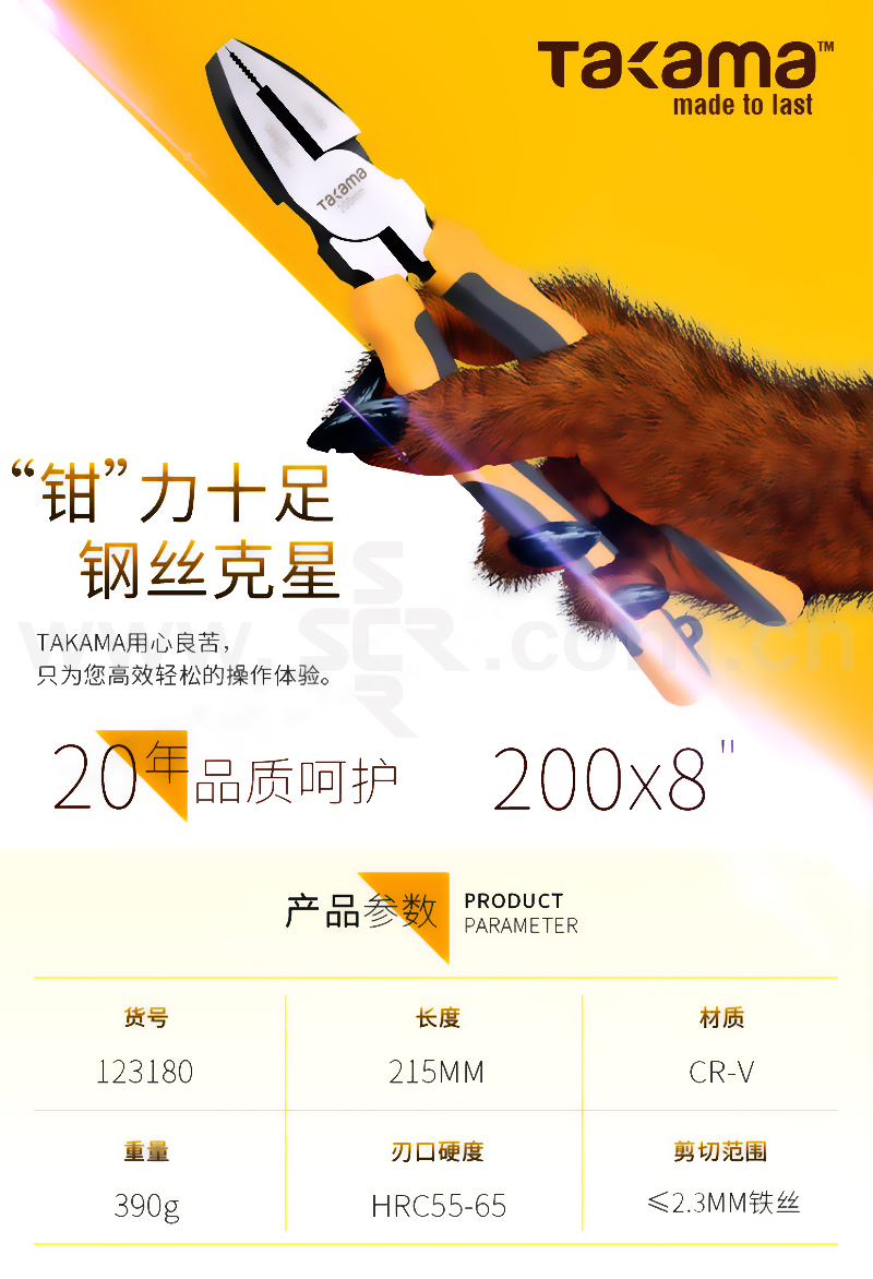 TAKAMA/台湾冠垣 日式钢丝钳 123180 8" 1把