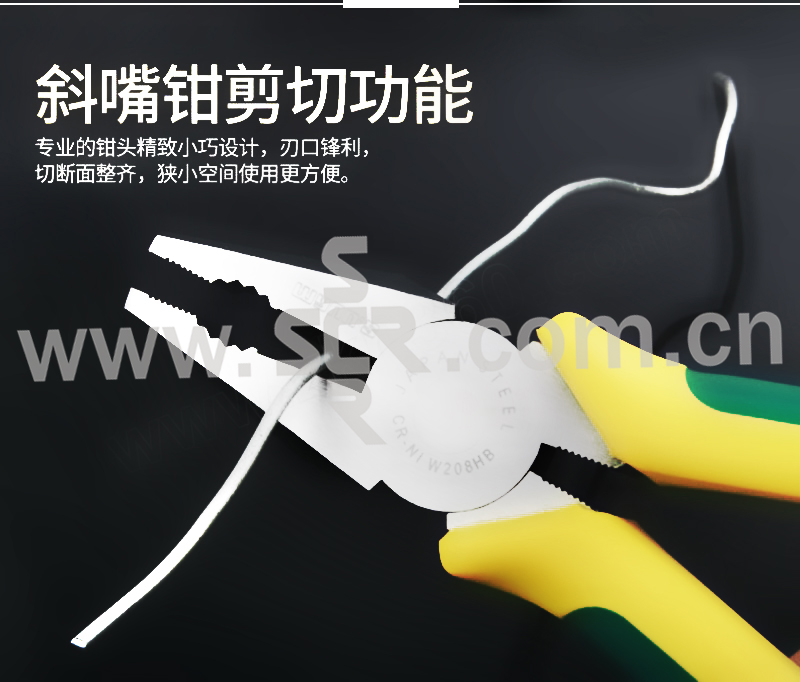 ·刃口经高频淬火处理,剪切锋利;钳头发黑精磨处理。