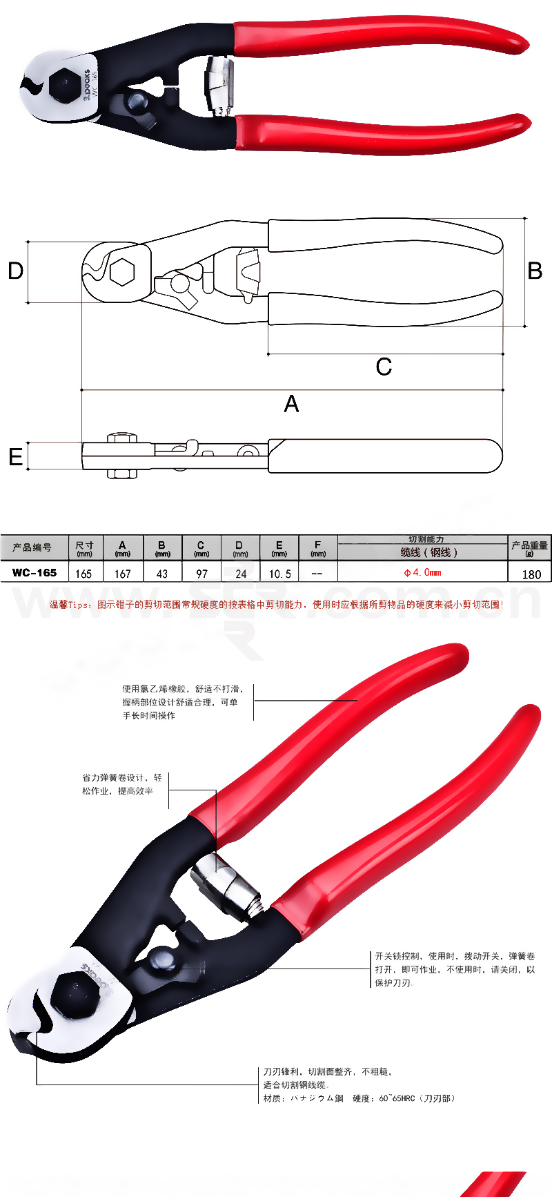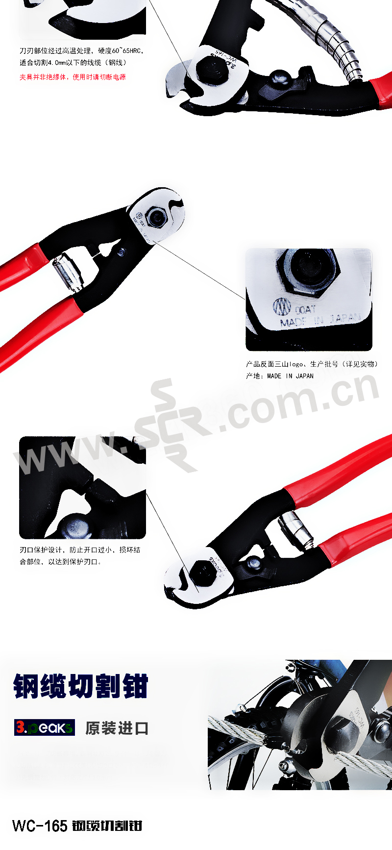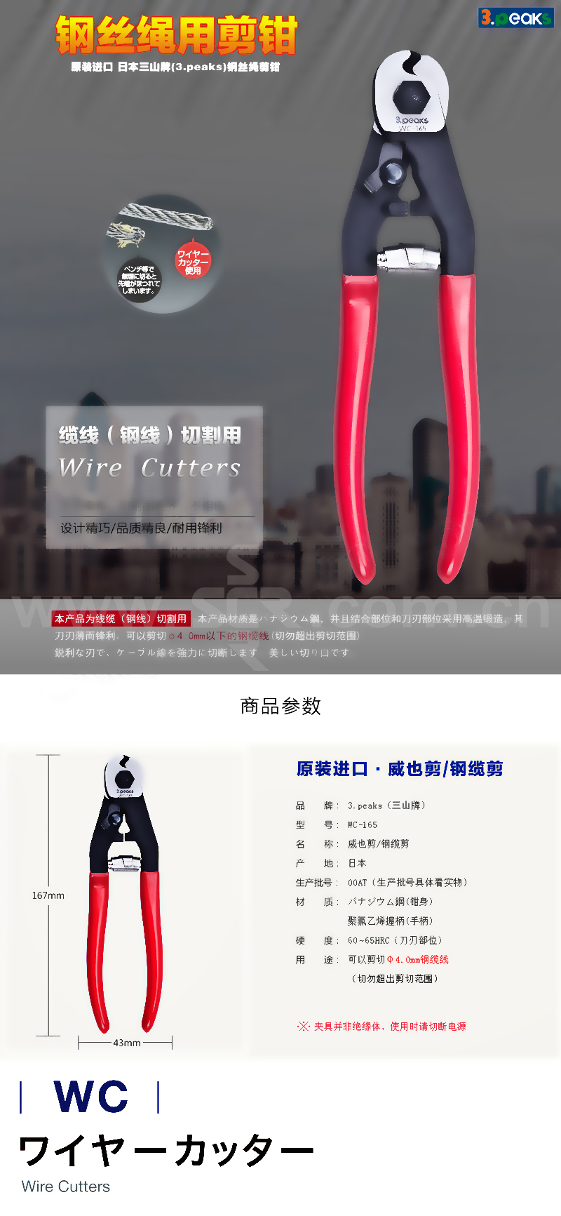3PEAKS/三山 进口钢丝钳 WC-165 165mm 1把