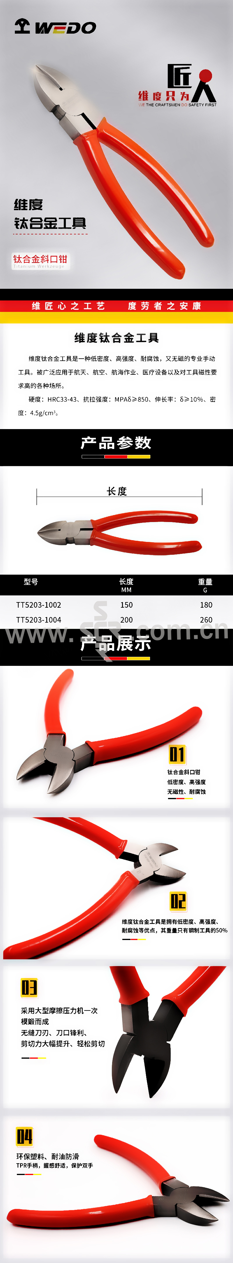 WEDO/维度 钛合金斜口钳 TT05203-1002 150mm 1把