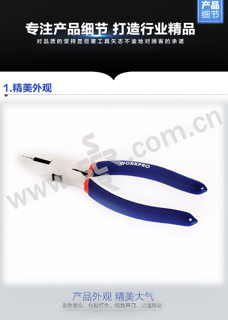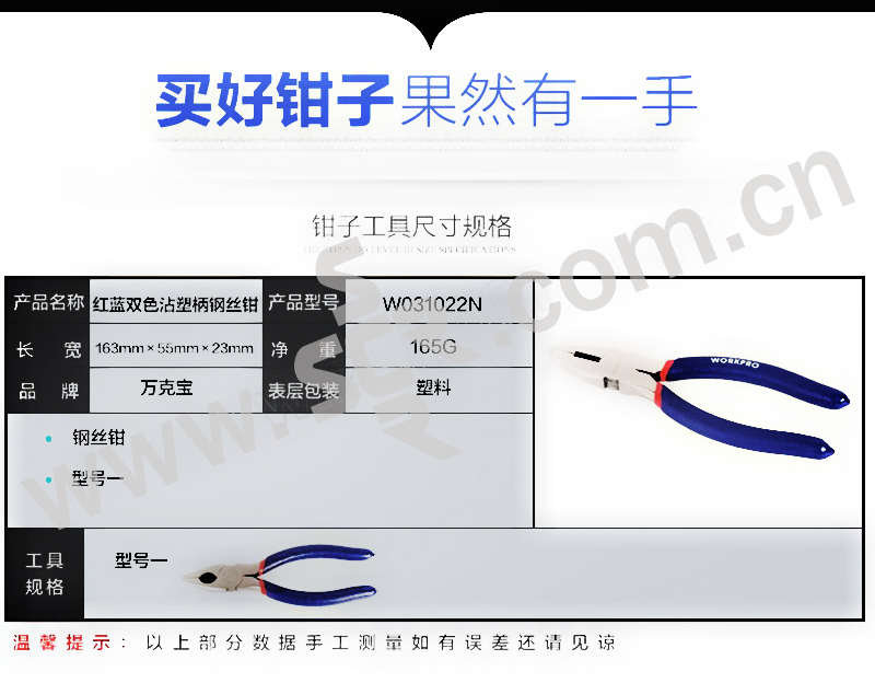 WORKPRO/万克宝 6"红蓝双色沾塑柄钢丝钳 W031022WE.GD 6" 1个