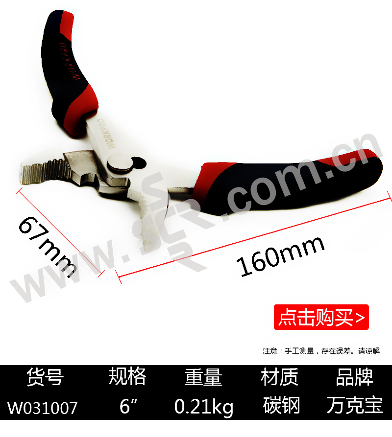 WORKPRO/万克宝 6"红蓝双色套柄鲤鱼钳 W031007WE.GD 6" 1个