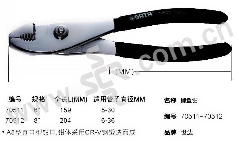 SATA/世达 鲤鱼钳 SATA-70511 6" 1把