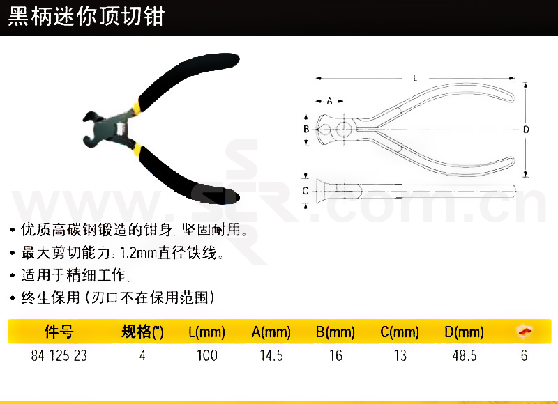 STANLEY/史丹利 黑柄迷你顶切钳 84-125-23 4" 1把