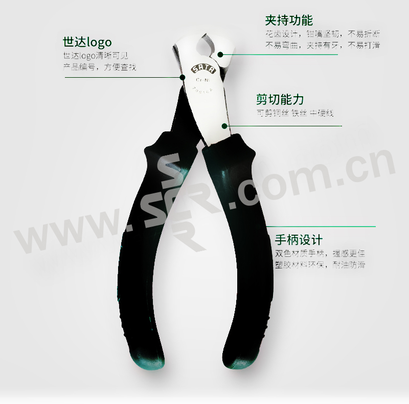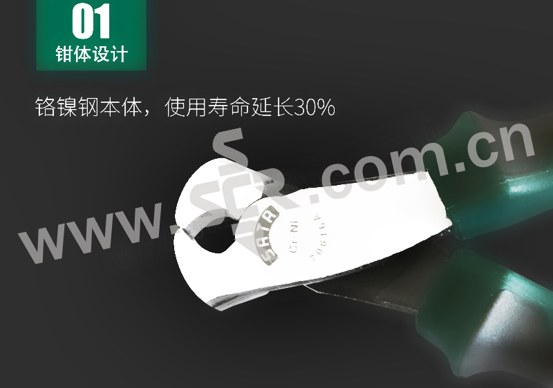 ·铬钒钢升级为铬镍钢,使用寿命较传统钳子延长30%。 ·手柄塑胶材料由单色沾塑升级为PP双色塑胶柄,设计动感,材料环保。 ·本体设计更符合流水线及高强度工作,减少手部疲劳感。 ·特殊涂抹防锈油工艺,符合更多场所使用。