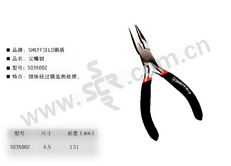 SHEFFIELD/钢盾 尖嘴钳 S035002 4.5" 麻柄 1把