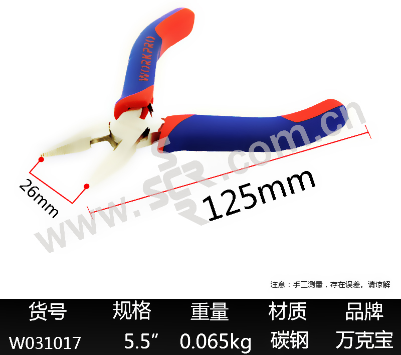 WORKPRO/万克宝 红蓝双色套柄迷你尖嘴钳 W031017WE.GD 1个