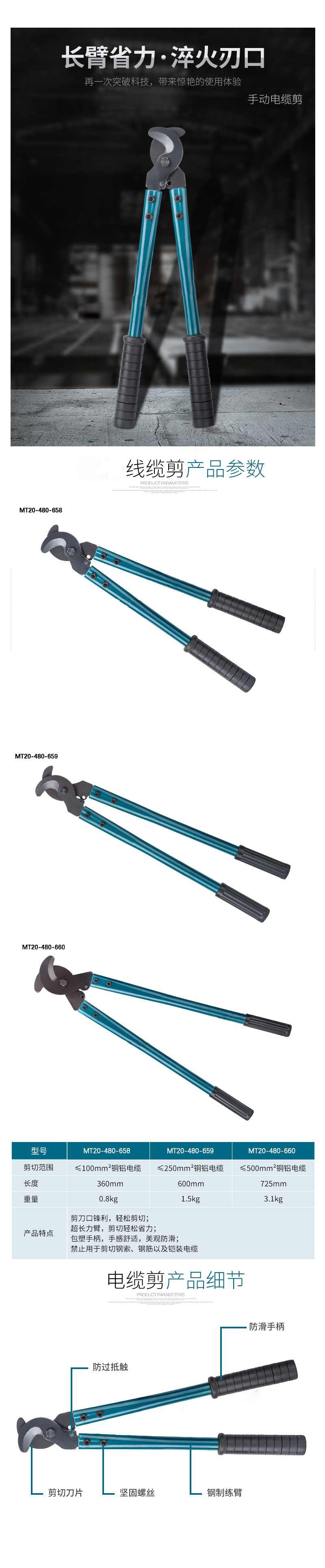 手动式铜线缆剪刀铝合金电线切断钳