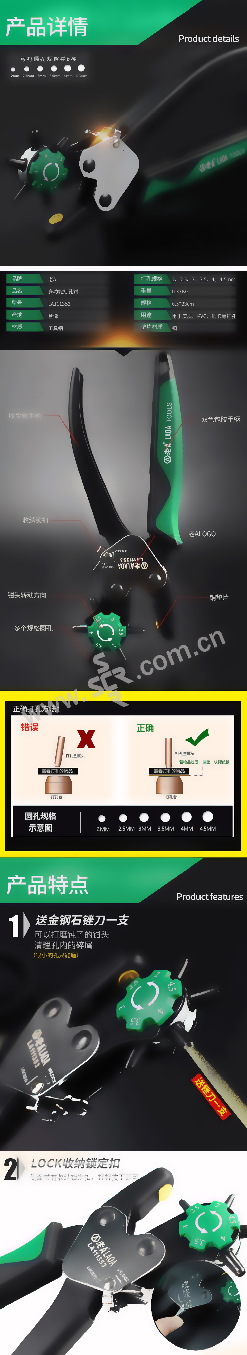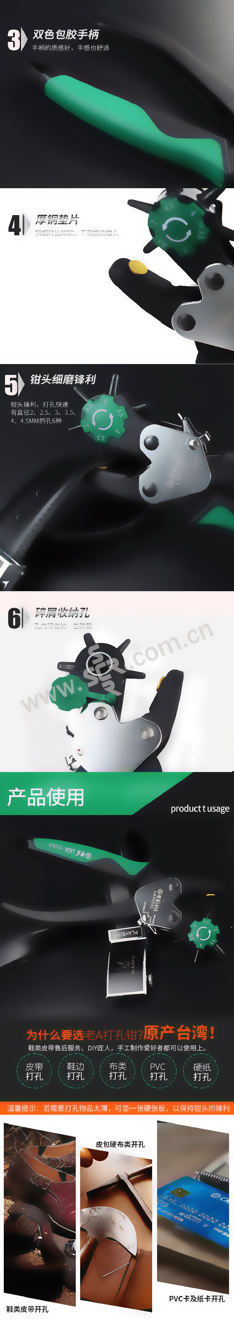 ·钳头细磨锋利打孔迅速,双色包胶手柄手感舒适