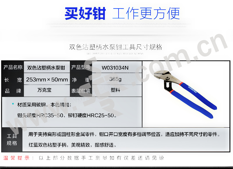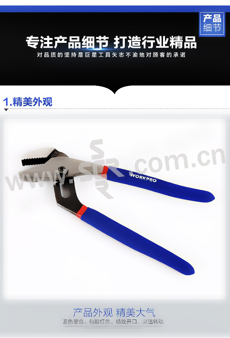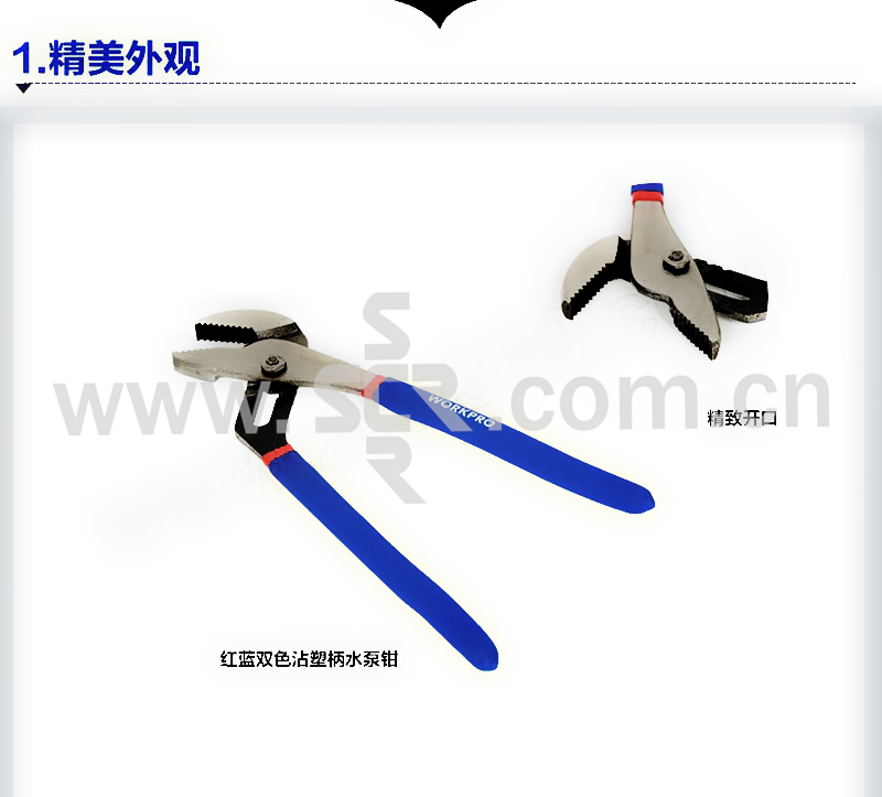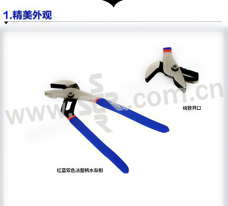 WORKPRO/万克宝 10"红蓝双色沾塑柄水泵钳 W031034WE.GD 10" 1个