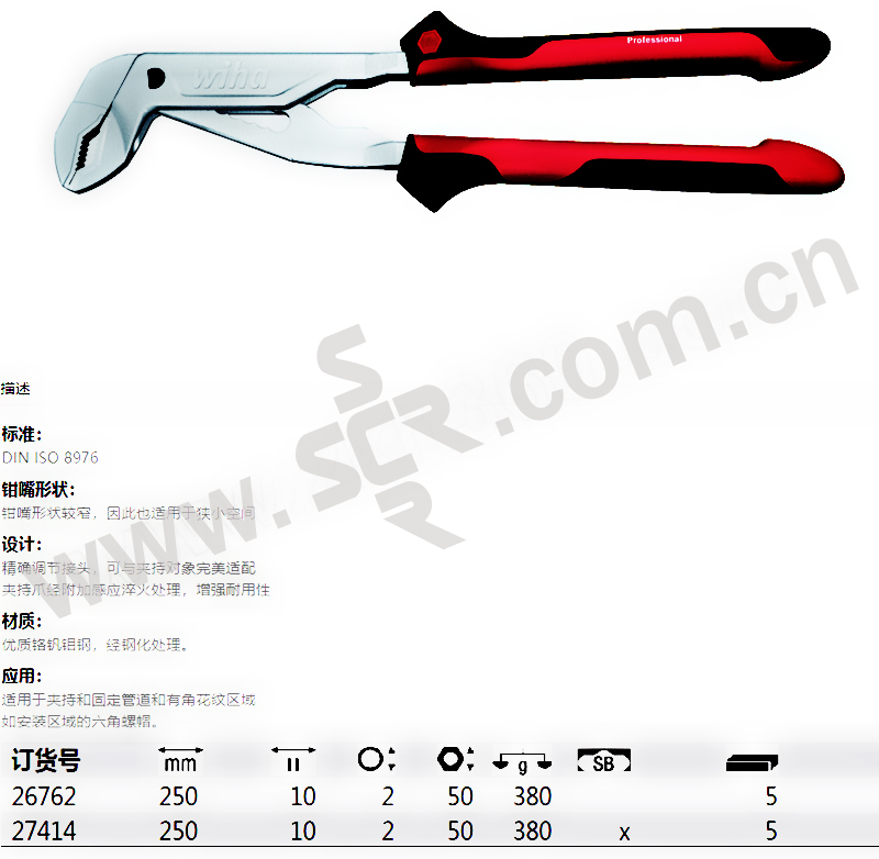WIHA/威汉 Z21005系列专业箱式水泵钳 WIHA-26762 250mm 双色柄 1把