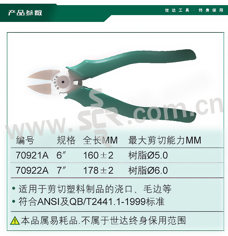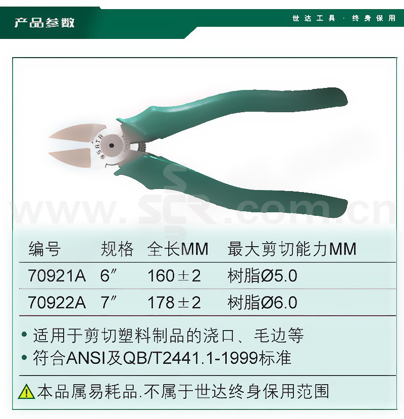SATA/世达 专业日式塑料水口钳 70921A 6" 1把