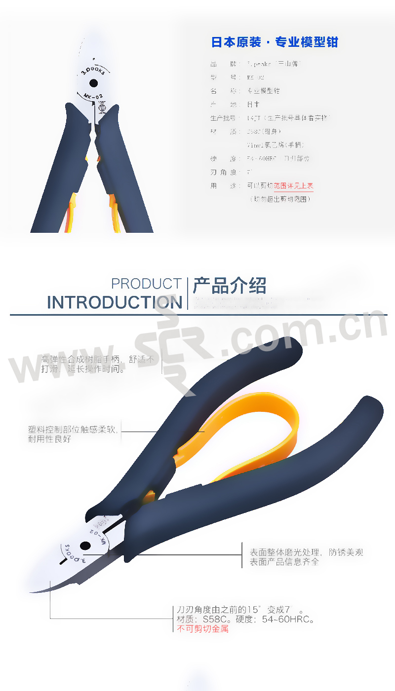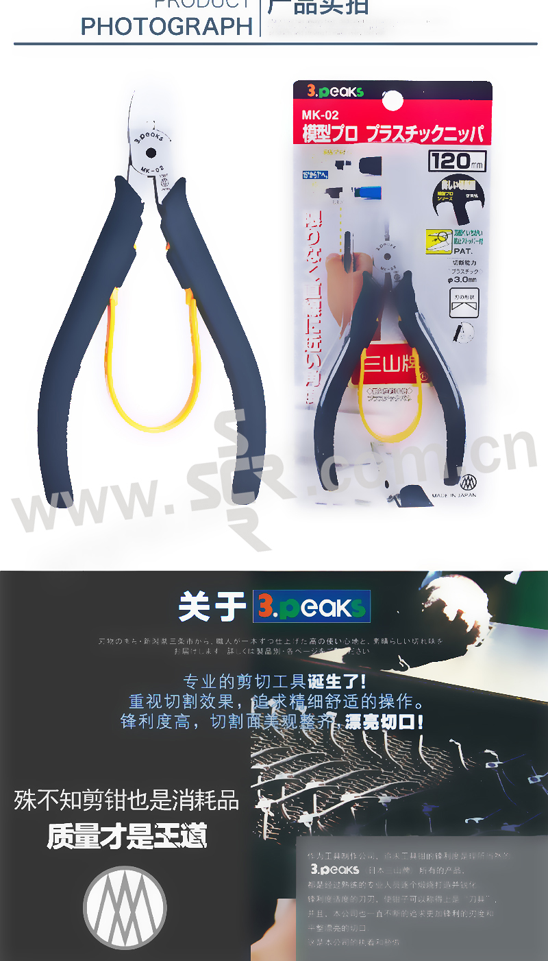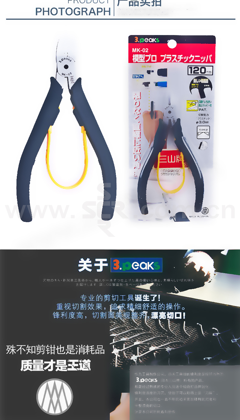 3PEAKS/三山 进口专业塑料模型钳 MK-02 120mm 1把