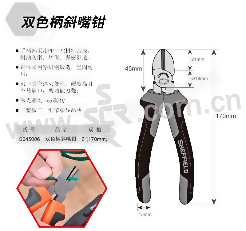 SHEFFIELD/钢盾 双色柄斜嘴钳 S045006 6" 1把