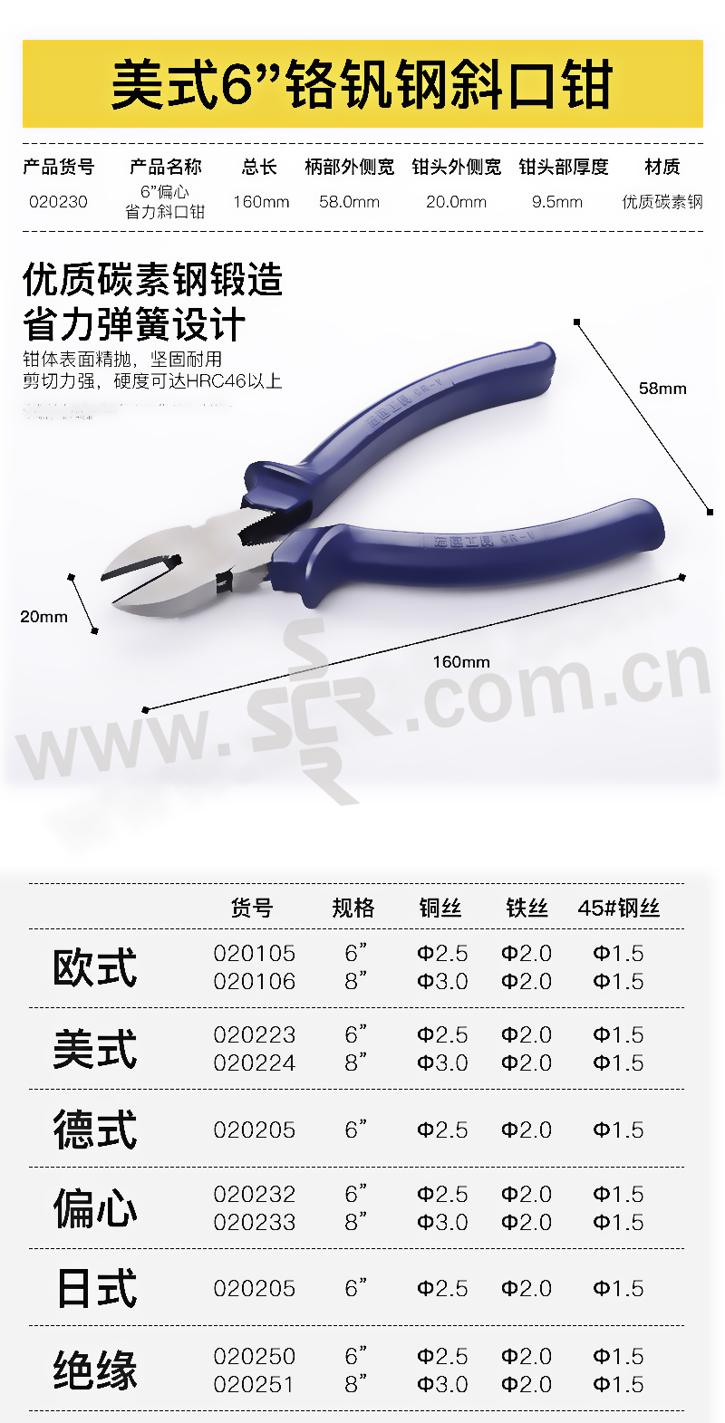 HOLD/宏远 美式8"铬钒钢斜口钳 HY-020226 8"×200mm 1把