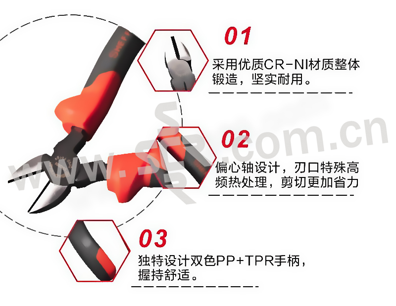 ·偏心轴设计,刃口特殊高频热处理,剪切更加省力。