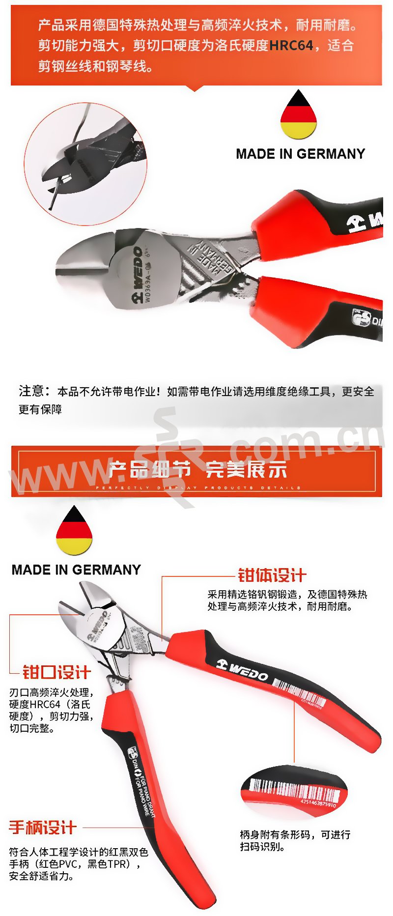 WEDO/维度 德式省力斜口钳 WD0363A-06 6" 1把