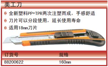 ·全新塑料PP+TPR两次注塑而成,手感舒适 ·刀片可以分段使用,延长使用寿命 ·适用18mm刀片