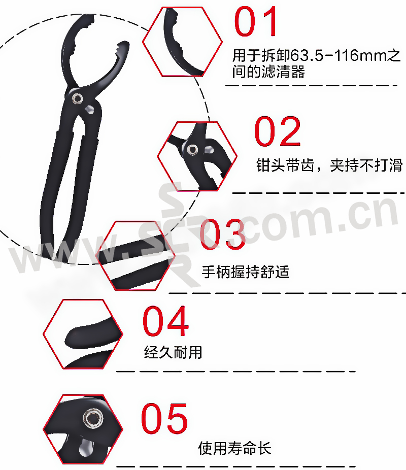 ·用于拆卸63。5-116mm之间的滤清器。