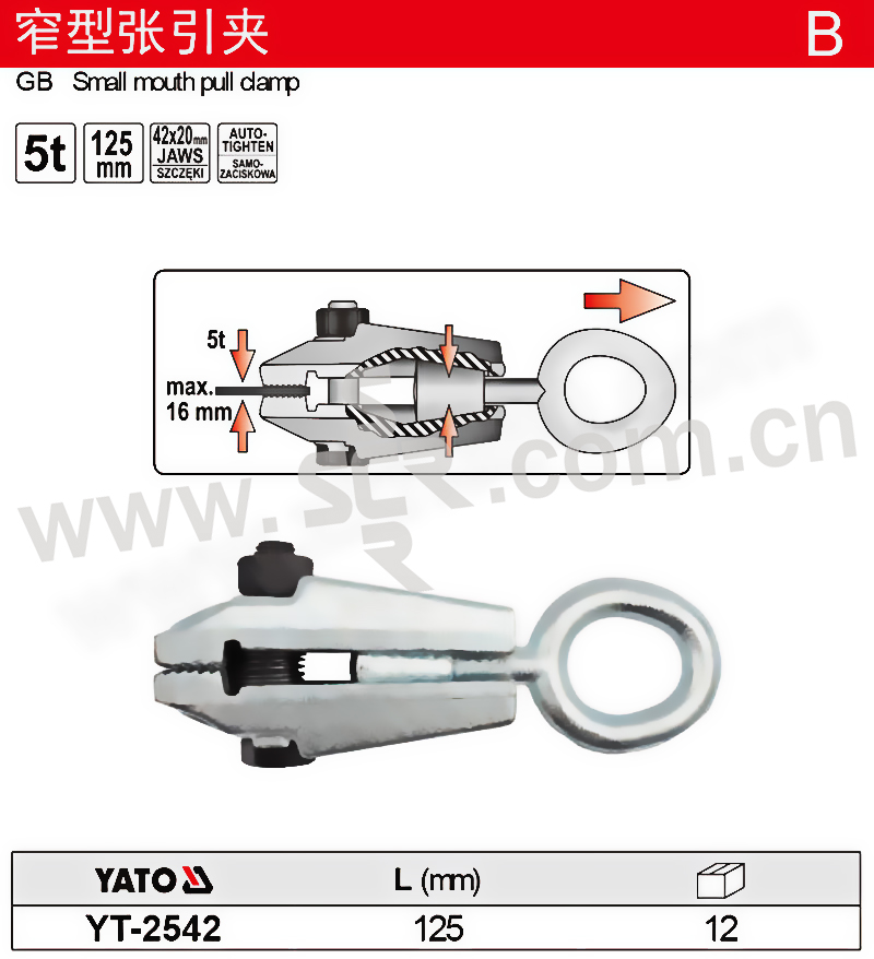 YATO/易尔拓 窄型张引夹 YT-2542 5T 125mm 1个