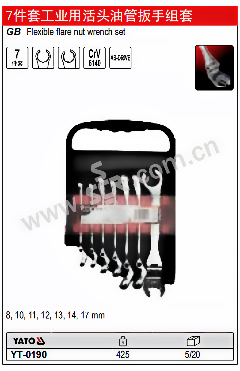 YATO/易尔拓 工业级活头油管扳手组套(7件) YT-0190 7件 8-17mm 1套