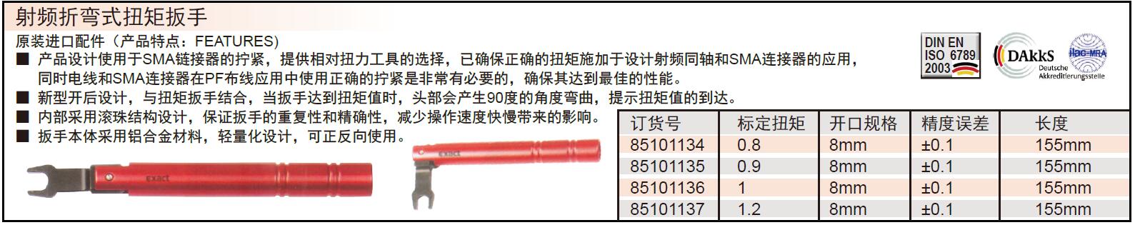 ·产品设计使用于SMA链接器的拧紧,提供相对扭力工具的选择,已确保正确的扭矩施加于设计射频同轴和SMA连接器的应用,