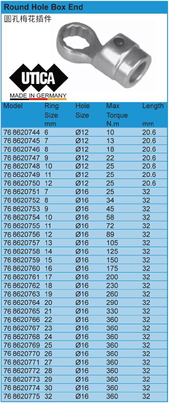 F36470 76 8620746 20.6mm 铬钒钢 Ø12mm 8mm - - 18N.m 锻造,镀铬 8mm 20.6mm 1435.08