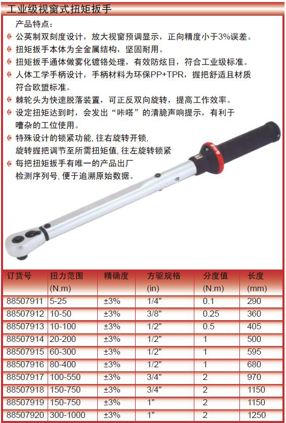 ·每把扭矩扳手有唯一的产品出厂检测序列号,便于追溯原