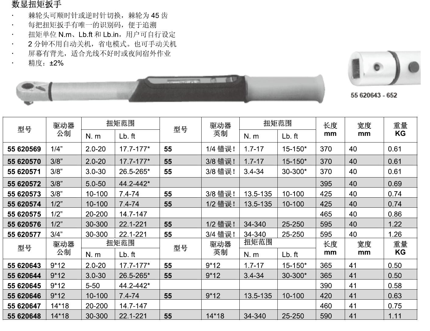 B14816 55 620570 2.0-20N.m 370mm 3/8" 17.7-177Lb.ft 40mm 0.61kg 6952.18