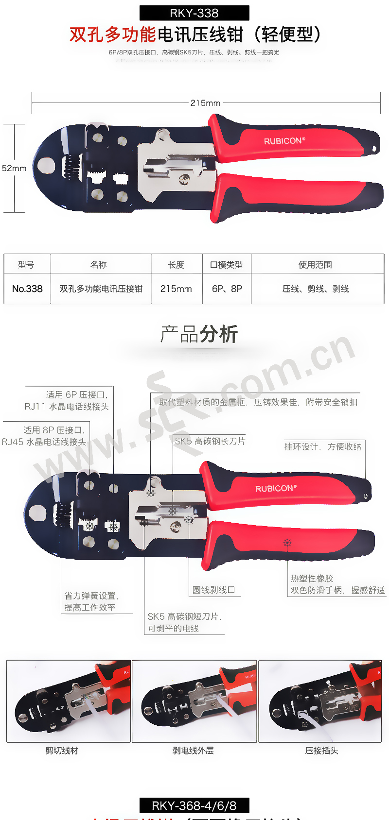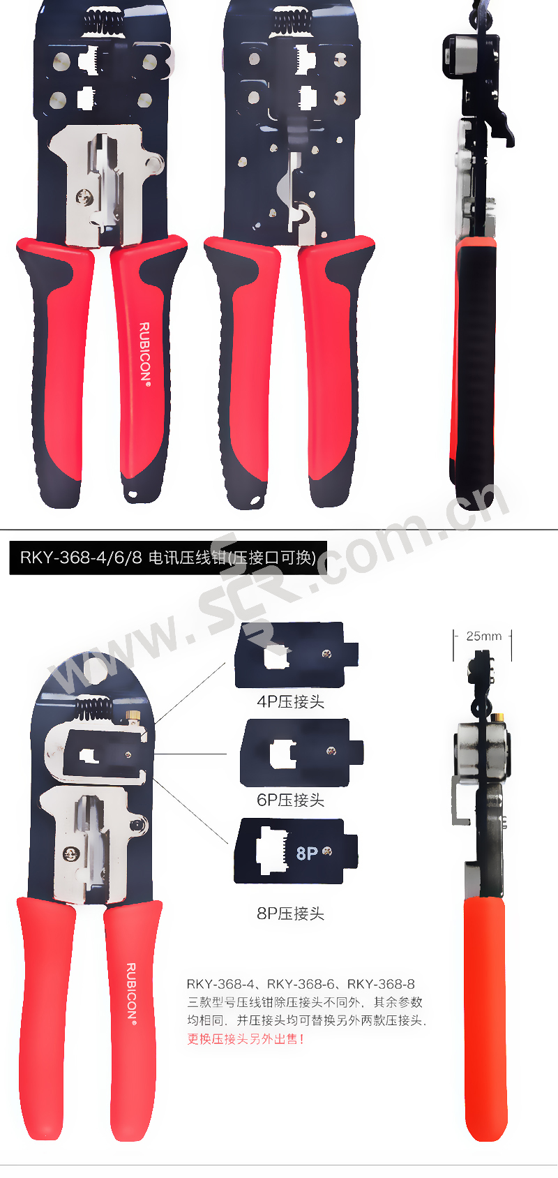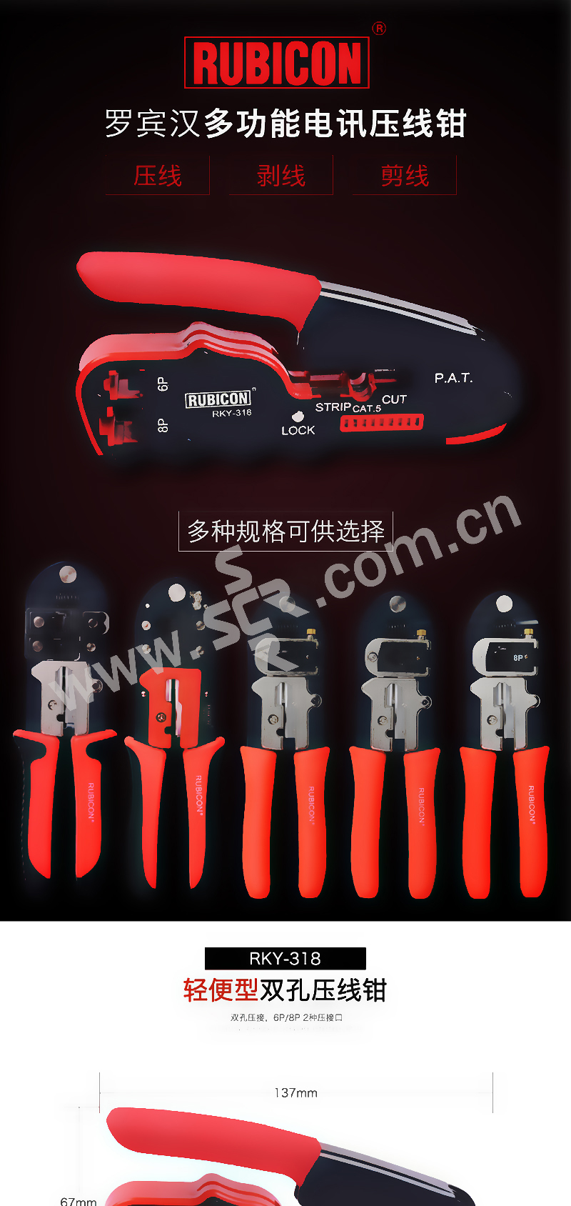 RUBICON/罗宾汉 进口4P多功能电话水晶头压接钳子 RKY-368-4 197mm 4P(可更换6P/8P) 1把