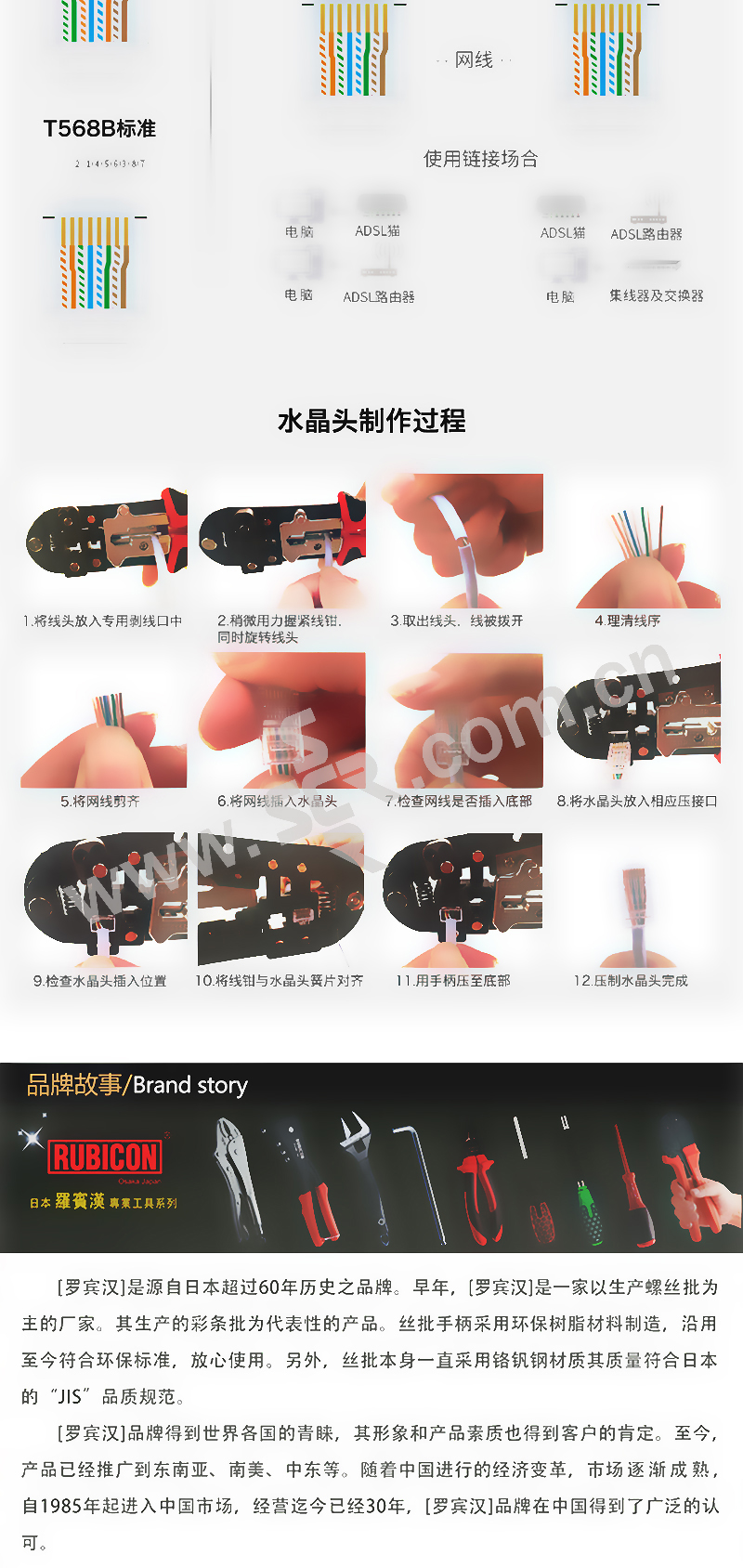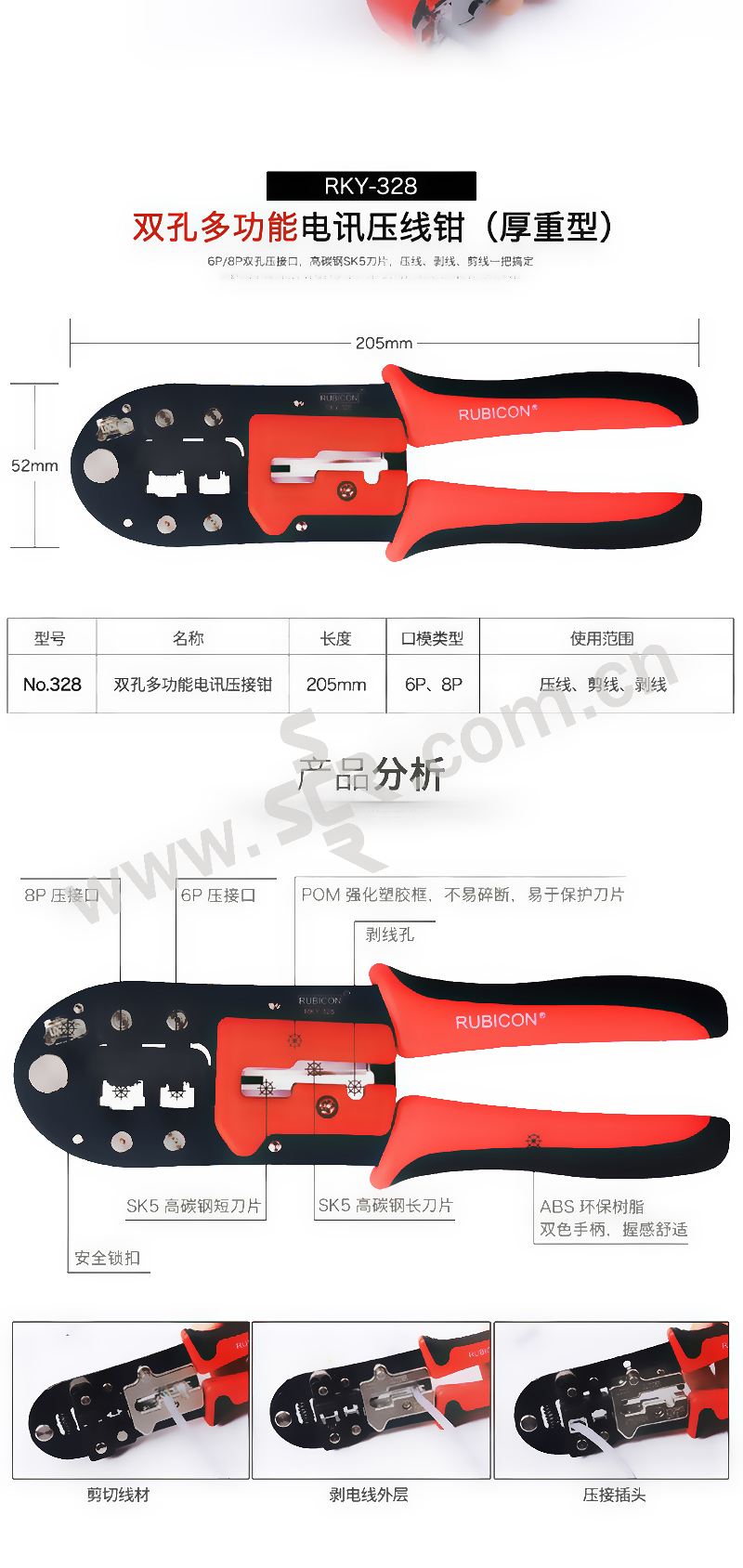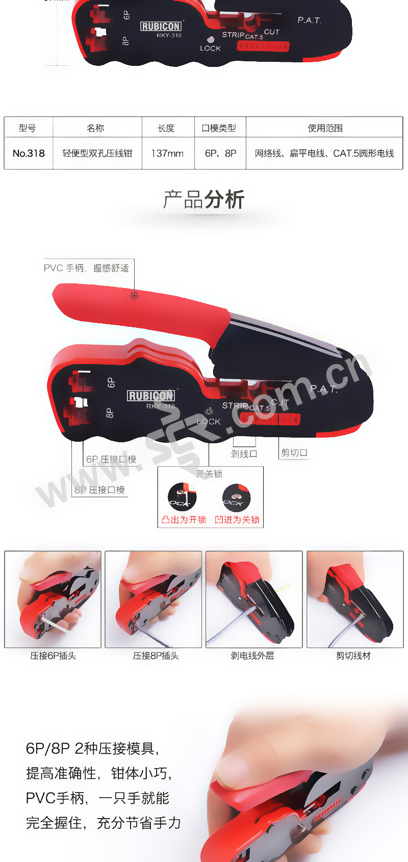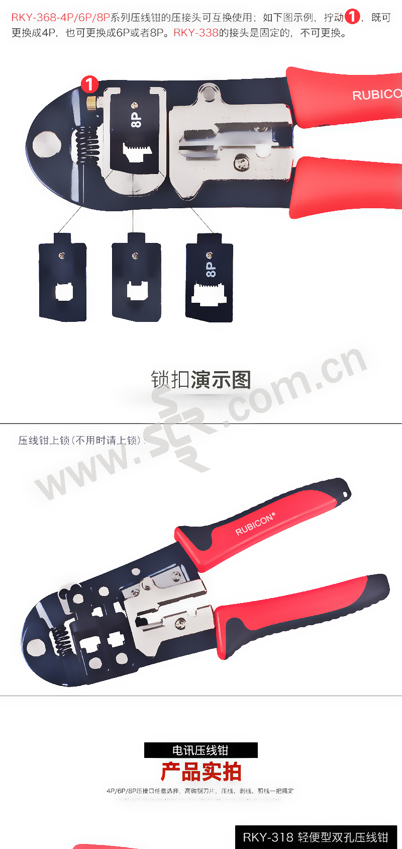 RUBICON/罗宾汉 进口4P多功能电话水晶头压接钳子 RKY-368-4 197mm 4P(可更换6P/8P) 1把