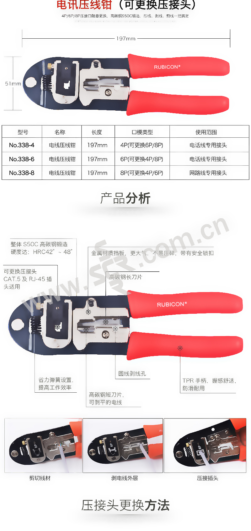 ·4P,6P.8P可更换拆卸接头.pvc手柄,握感舒适,整体S50C高碳钢制造