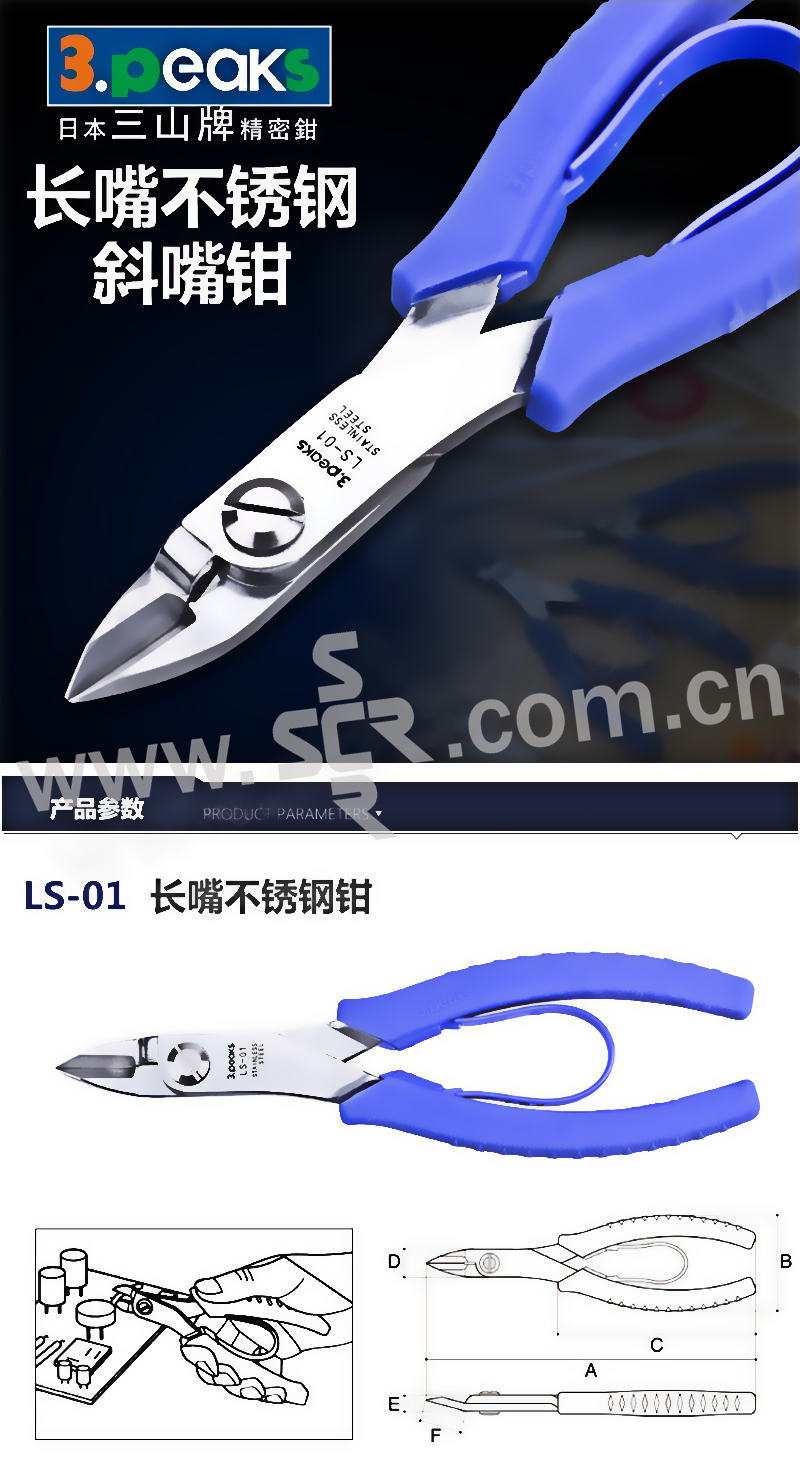 3PEAKS/三山 进口电子扁嘴钳 LS-05 165mm 1把